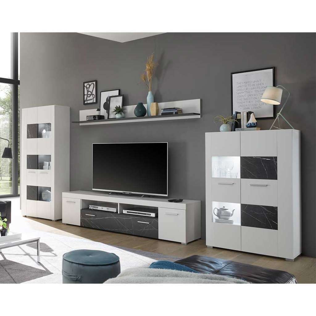 Bicolor Wohnwand in Anthrazit Marmoroptik Weiß (vierteilig)