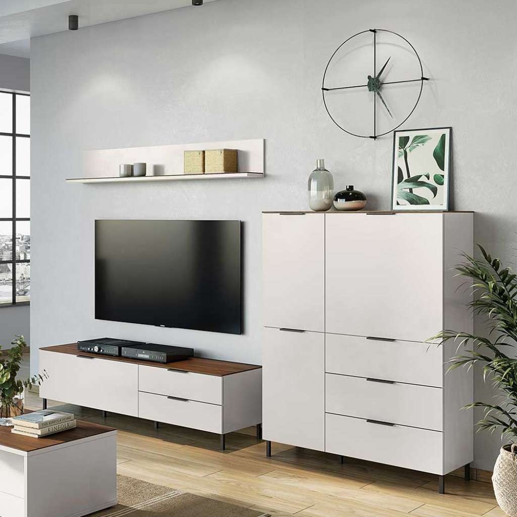 Designer Wohnwand in Hellgrau und Nussbaum Optik Made in Germany (3-teilig)