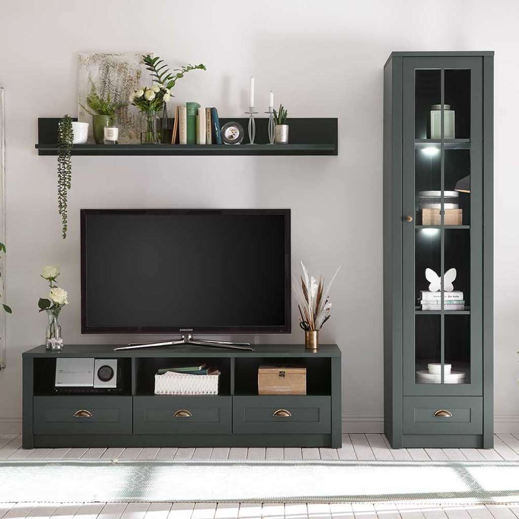 Informationen über Landhaus Anbauwand in Dunkelgrün 210 cm breit (3-teilig)