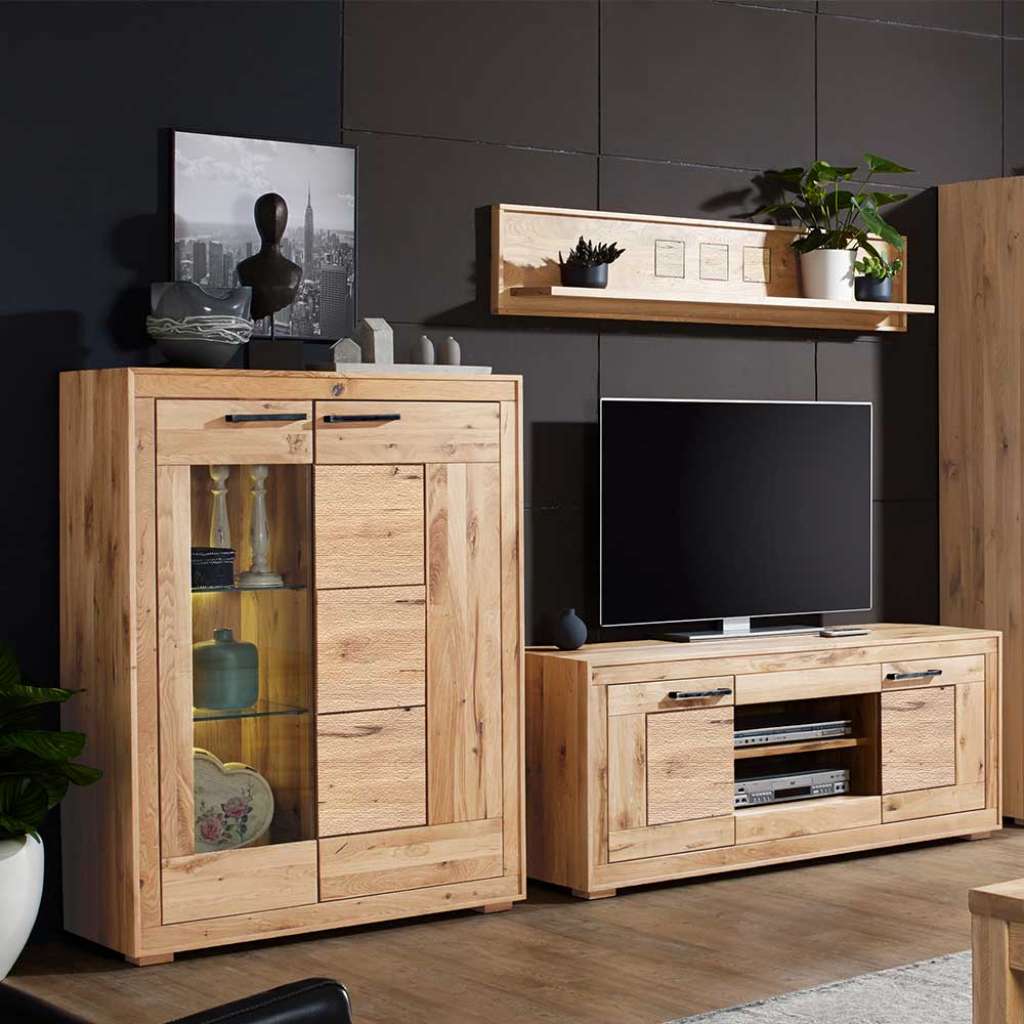 - Wohnzimmerschrank Wildeiche hell - Wohnwand Wildeiche Massivholz - Wohnwand modern Modern - Wohnwand massiv Breite: 253 - Schrankwand Höhe: 165 - Anbauwand Tiefe: 46 - Wohnzimmer schrank Mehrteilig: 3-teilig - Wohnwand massivholz Fertig montierte Anlieferung (eventuell müssen noch Kleinteile angebracht werden) - Wohnwand holz Massivholz Oberfläche, Geölt und Sandgestrahlt - Wohnzimmerwand Metallgriffen - Wohnwand echtholz Griff Form: Bügelgriff Varianten - Tv wohnwand 001: Beleuchtung: Ohne Beleuchtung / Energieeffizienzklasse: - Designer wohnwand 002: Beleuchtung: LED Beleuchtung / Energieeffizienzklasse: LED