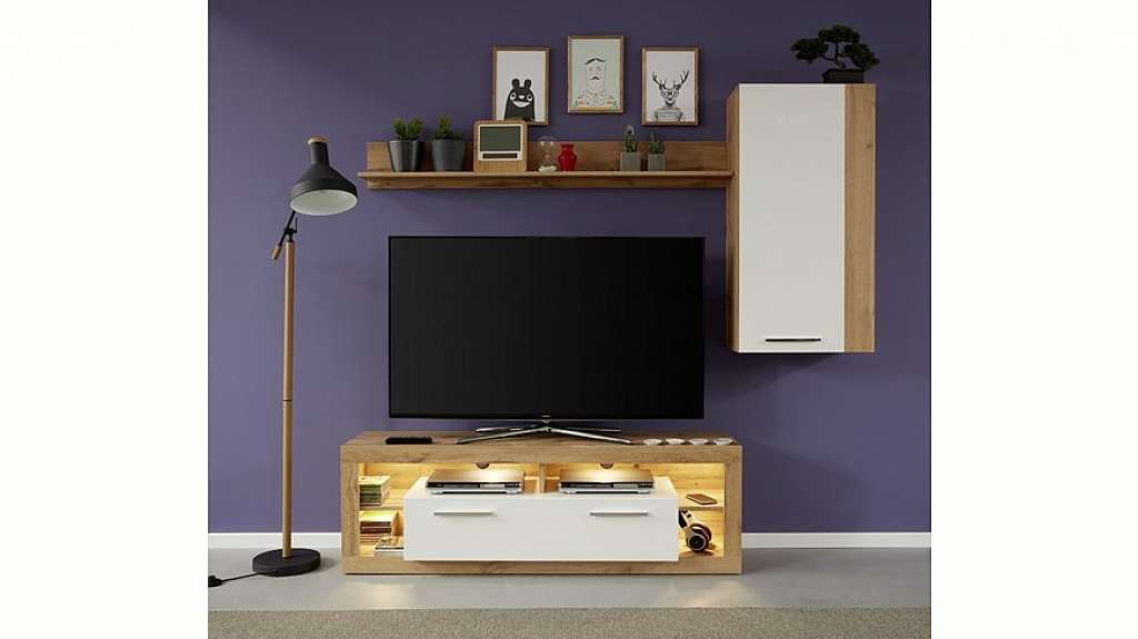 Wird zum Blickfang in den heimischen vier Wänden: die 3-teilige Wohnwand »Rock« von trendteam. Das praktische Wandboard kann als Dekorationsfläche genutzt werden, um dem Raum durch Wohnaccessoires oder Fotos eine persönliche Note zu verleihen. In den Fächern des schicken Lowboards lassen sich technische Geräte, CDs und Videospiele verstauen. Der Hängeschrank bietet Platz für verschiedene Dinge, wie Geschirr, Unterlagen oder Fotoalben. Die modernen Trendfarben der Möbel lassen sich harmonisch in unterschiedliche Wohnkonzepte integrieren. Qualitativ überzeugen sie mit einer Fertigung aus FSC®-zertifiziertem Holzwerkstoff. Schicke Möbel für das Zuhause: die 3-teilige Wohnwand »Rock« von trendteam.