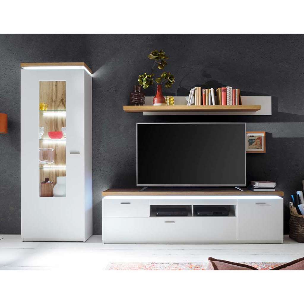 Informationen über TV Wohnwand in Weiß und Wildeiche Optik LED Beleuchtung (3-teilig)