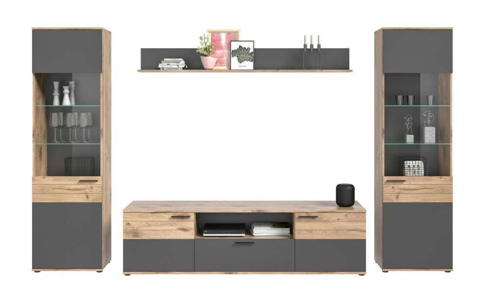 Unser Produkt Wohnkombination gibt es in den Farben: grau Der Hersteller ist bekannt für die hohe Qualität der verwendeten Materialien. Maße: · Breite: 338 cm · Höhe: 200 cm · Aktion: Newsletter-Anmeldung 10€ Willkommens-Gutschein. · Aktion: 3% Kundenkarten-Rabatt. · Der Artikel befindet sich in der Höffner-Kategorie: Wohnwände - - .