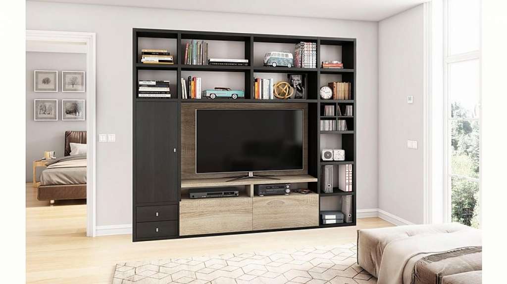 Kompakte Maße bei durchdachter Aufteilung bietet die praktische Wohnwand »TORO 372-4«. In den Fächern stellt die Wohnkombination viel Stauraum und Stellfläche zur Verfügung. Hinter der Tür und in den Schubladen des Stauraumschranks lassen sich die unterschiedlichsten Dinge staubgeschützt und blickdicht aufbewahren. Ausgestattet ist die Tür mit einer Soft-Close-Funktion, wodurch sie sich leise und materialschonend schließen lässt. Das TV-Lowboard besitzt eine Kabeldurchführung. Kabel werden unsichtbar und geordnet verlegt. Das Öffnen der Klappen erfolgt simpel dank der Push-to-Open-Funktion per Druck auf die Front. Für Bücher, Familienfotos und dekorative Accessoires bieten sich die offenen Fächer des Standregals und des Wandregals an. Die praktische Wohnwand »TORO 372-4« ist mit kompakten Maßen und reichlich Stauraum die passende Wahl für das Wohnzimmer.