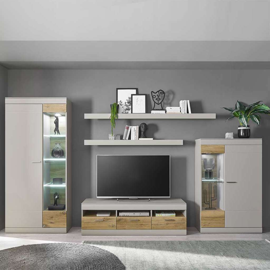 Wohnzimmerschrankwand modern in Hellgrau Zinneichefarben (fünfteilig)
