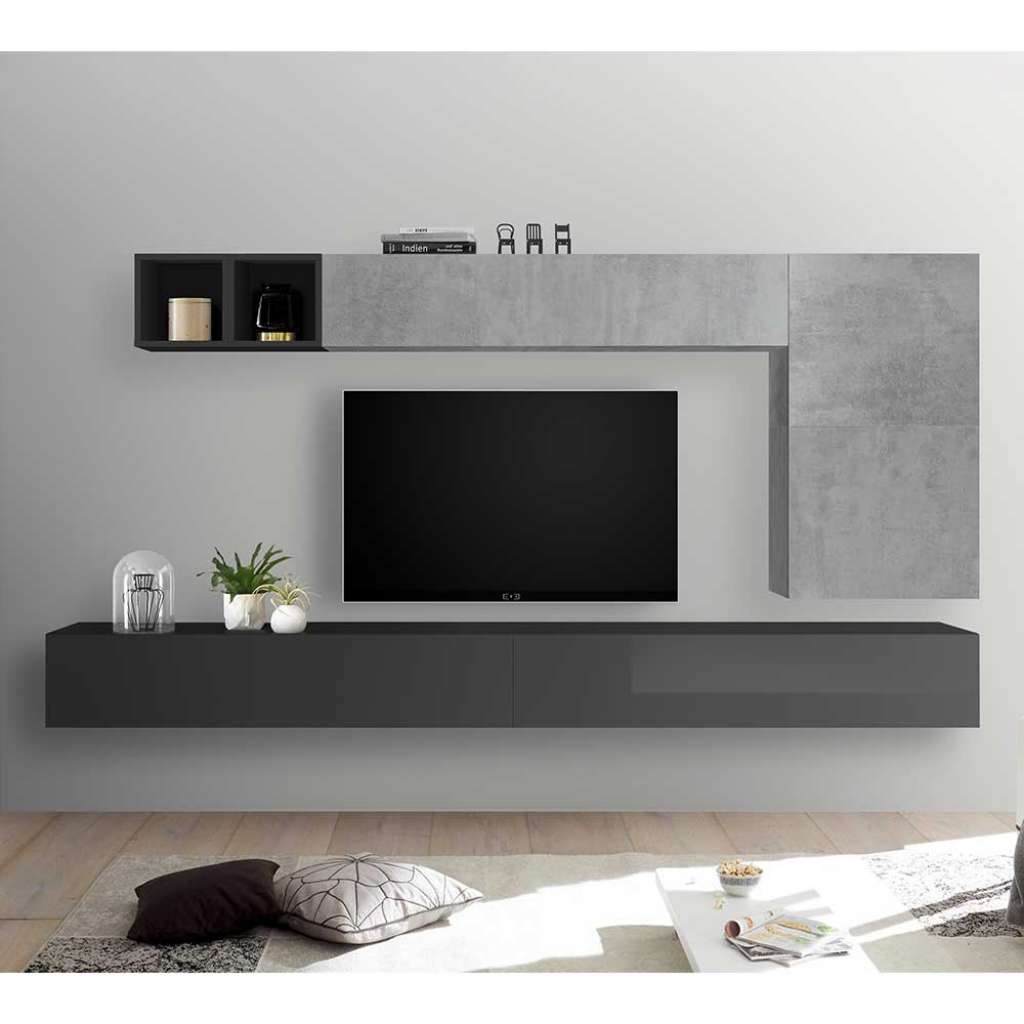 - Wohnzimmerschrank Beton Grau und Anthrazit - Wohnwand Spanplatte - Anbauwand Industry & Loft - Wohnwand modern Breite: 276 - Wohnwand hochglanz Höhe: 200 - Wohnzimmer schrank Tiefe: 30 - Wohnzimmerwand Modernem Hochglanz - Wohnzimmer anbauwand Mehrteilig: 7-teilig - Tv wohnwand Ohne Beleuchtung - Wohnwand 300 cm Zerlegt, zum leichten Selbstaufbau (Montageanleitung liegt bei) - Tv wohnwand modern Lackiert und Melaminbeschichtet