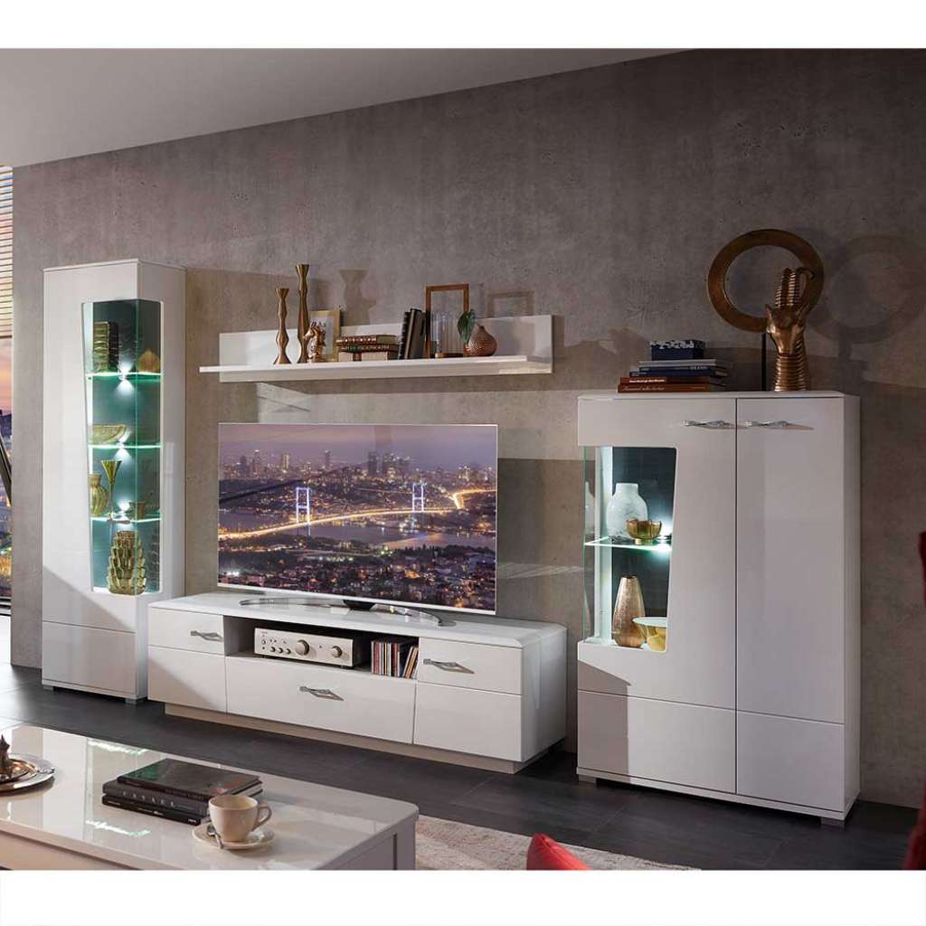 Wohnzimmerwand in Hochglanz Weiß LED Beleuchtung (4-teilig)