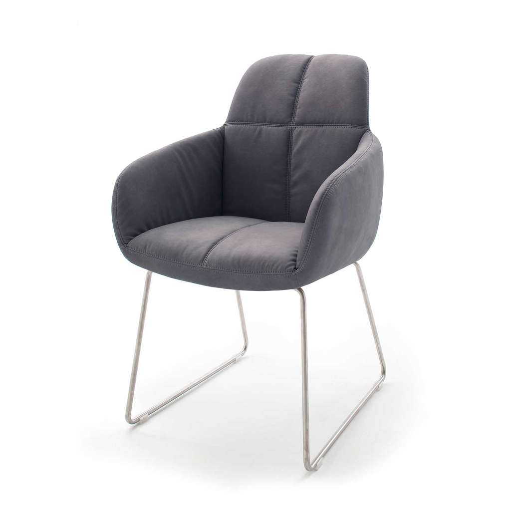 Das Esszimmerstuhl - System Tessera ist absolut kompromisslos in Punkto Design, Verarbeitung und Qualität. Mit dem Armlehnstuhl Tessera haben Sie die Möglichkeit den Esszimmerstuhl individuell nach Ihren Vorstellungen zu konfigurieren: Wählen Sie Ihren Stuhl zwischen: 2 x Bezugsfarben 3 x Gestelle in Edelstahl gebürstet 3 x Gestelle in Anthrazit lackiertDer Bezug ist aus dickem jedoch atmungsaktivem Kunstleder, welchen wir auch Nappalederlook nennen! Neben diesen 18 Esszimmerstuhl - Varianten gibt es bei unserem Stuhlsystem noch 5 andere Sitzschalen, wobei es auch passend zu diesem Stuhl einen Armlehnstuhl gibt. Esszimmerstuhl im 2er Set Pflegeleichtes Kunstleder (Nappalederoptik) in mehreren Farben Moderne Gestelle aus gebürstetem Edelstahl oder in Anthrazit lackiert Stuhl bis 140 kg belastbarUns hat die Tessera - Stuhlserie in Qualität und Vielfalt überzeugt. Ebenso ist der Sitzkomfort einmalig und der pflegeleichte Bezug verzeiht gerne einmal kleine Kleckereien. Maße: Gesamtmaße: B62 x T65 x H101 cm 46 cm Sitzbreite 46 cm SitzhöheMaterial: Bezug: 100% Polyurethan Gestell: Gebürstetes Edelstahl oder Metall in Anthrazit lackiertFarbe vom Polster: Braun (Schlamm) oder GrauFarbe vom Gestell: Edelstahl gebürstet oder Anthrazit lackiertLiefermenge / -art: 1x Armlehnstuhl 2er Set * / wird zerlegt in 2 Kartons geliefert *ohne Dekoration und Beimöbel