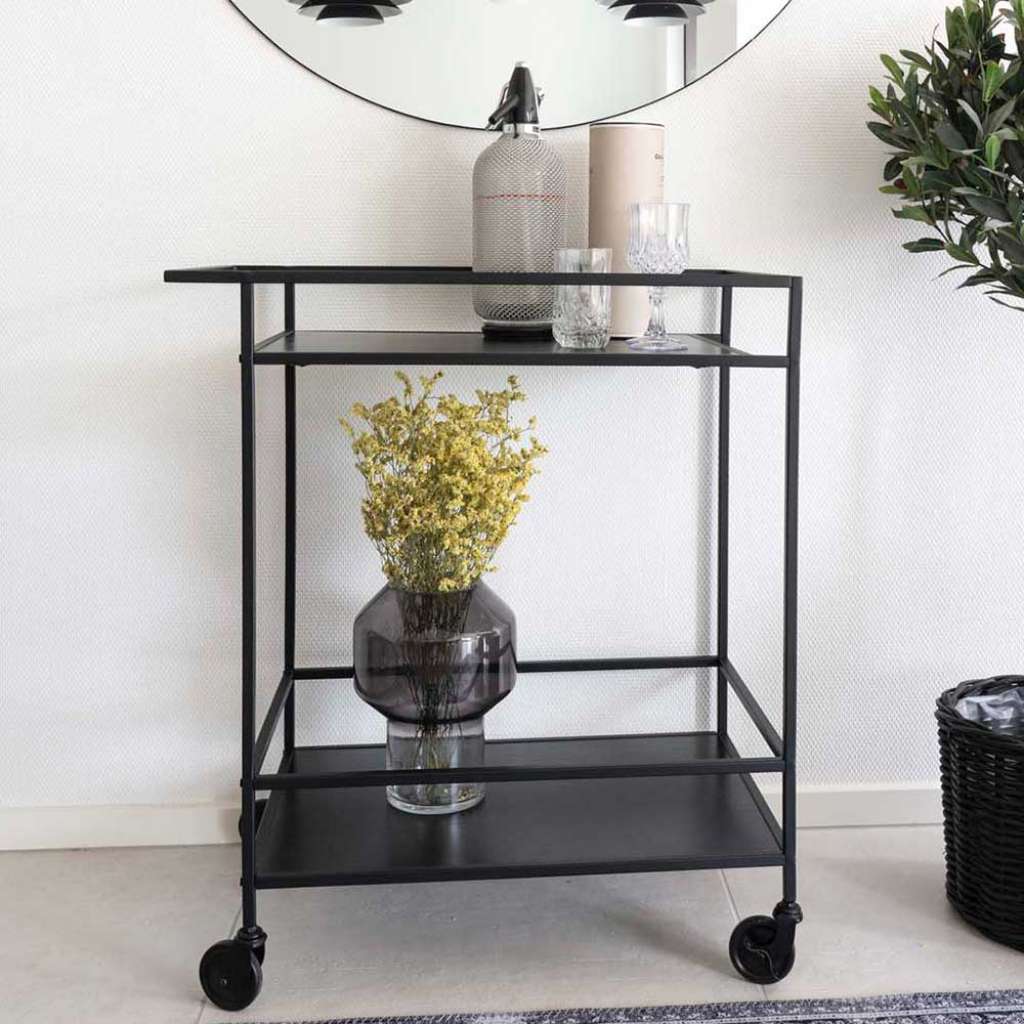 Informationen über Rollbarer Serviertisch in Schwarz Metall