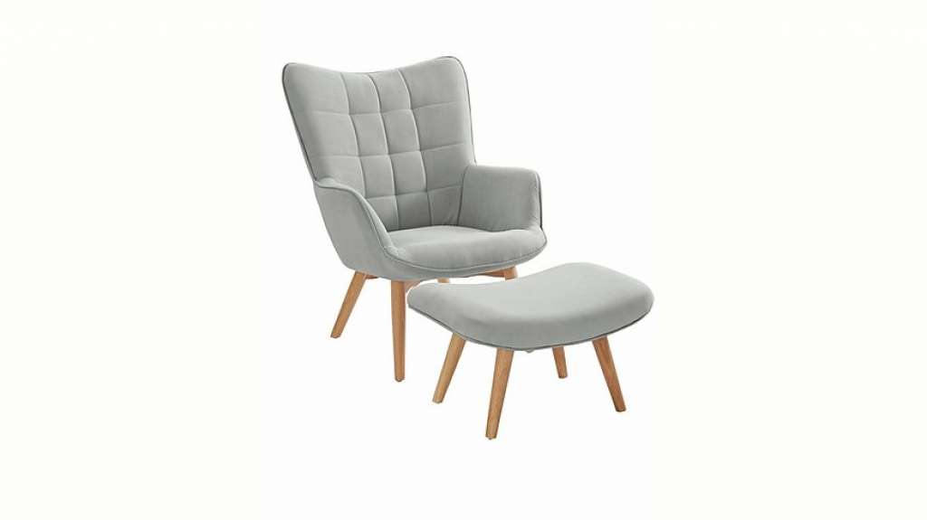 Sessel und Hocker im Set in 3 Farben. Stabiles Holzgrundgestell aus massivem Buchenholz. Fester Schaumstoffkern. Sessel mit dekorativer Ziersteppung und Kederheftung. Füße aus Massivholz Buche. Materialzusammensetzung: Gestell: Buche; Bezug: Polyester; Füße: Buche