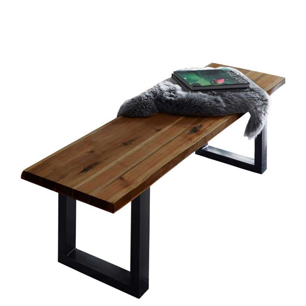 Massivholz Bank in Akaziefarben Bügelgestell Schwarz