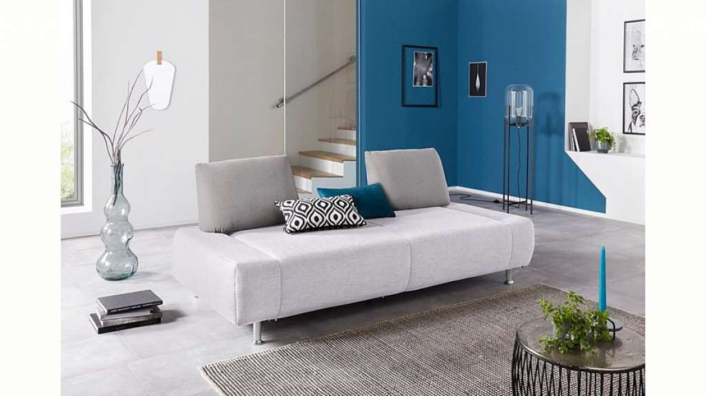 Trendiges Polstermöbel: Das 2,5-Sitzer Sofa von sit&more in hochwertiger Verarbeitung begeistert durch sein modernes Design. Geprägt wird die Optik durch die farbige Gestaltung sowie die Füße aus Metall. Die steckbaren Rückenkissen sind farblich vom Korpus abgesetzt. Da die Couch in unterschiedlichen Bezugsvarianten erhältlich ist, lässt sie sich entsprechend des heimischen Farbkonzeptes auswählen. Neben dem Design überzeugt das Polstersofa durch seinen hohen Sitzkomfort. Diesen verdankt die Polstercouch der komfortablen Wellenunterfederung sowie der straffen, festen Polsterung. Für die Fertigung des Möbelstücks wird ein FSC®-zertifizierter Holzwerkstoff verwendet. Das 2,5-Sitzer Sofa von sit&more in hochwertiger Verarbeitung lässt sich frei in den Raum stellen und in die vorhandene Einrichtung integrieren.