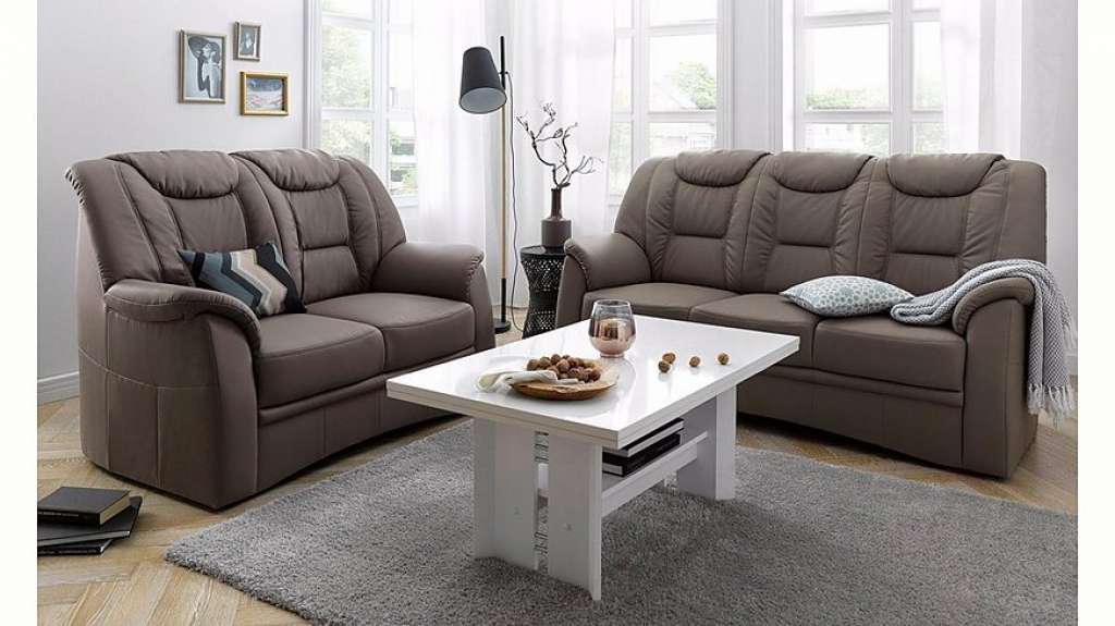 Details: Inklusive komfortablen Federkerns. Frei im Raum stellbar. In der Lieferung sind keine Zierkissen enthalten. In verschiedenen Bezugsqualitäten erhältlich. In hochwertiger Verarbeitung. In verschiedenen Farbkombinationen erhältlich. Füsse aus Kunststoff. Hoher Sitzkomfort. Trendiges Design. Sitzkomfort: Komfortable Wellenunterfederung. Komfortabler Federkern. Atmungsaktive Polyätherschaum-Polsterung. Stabiles Holzuntergestell. Straffe, feste Polsterung. Generelle Masse: 193/143/98 cm Gesamtbreite (3-Sitzer/2-Sitzer/Sessel). 105 cm Höhe. Sitzbreite zwischen den Armlehnen: 140/90/45 cm (3-Sitzer/2-Sitzer/Sessel). 101 cm Gesamttiefe. 45 cm Sitzhöhe. 57 cm Sitztiefe. 66 cm Armlehnen-Höhe. 27 cm Armlehnen-Breite. 100 cm Armlehnen-Tiefe. Höhe der Füsse: 2 cm. Alle Masse sind ca.-Masse. Bezüge/Qualitäten: Microfaser PRIMABELLE® (100% Polyester). Kunstleder SOFTLUX®. NaturLEDER® (echtes Rindsleder) in Sitz und Rücken. Korpus in passendem Kunstleder SOFTLUX® bezogen. NaturLEDER®: Bitte beachten Sie, dass Lederbezüge mehr Nähte aufweisen als Stoffbezüge. Pflegehinweise: * Sorgfältig entstauben * Mit einem weichen, sauberen und feuchtem Tuch und leichter Seifenlauge reinigen * Benutzen Sie keine Scheuermittel wie Pulver, Stahlwolle, Lösungsmittel * Nicht zu nass abwischen . FSC®-zertifiziert: Das Label des FSC® weist nach, dass Sie mit dem Kauf dieser Produkte vorbildliche Waldwirtschaft - nach den strengen ökologischen, sozialen und wirtschaftlichen Standards des Forest Stewardship Council® - fördern und die Waldressourcen schonen. Set: 3-Sitzer + 2-Sitzer