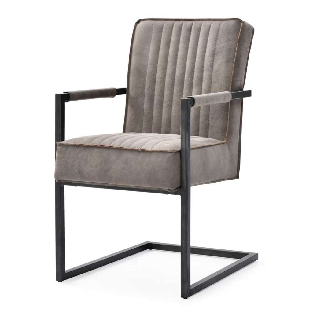 Informationen über Armlehnen Freischwinger in Taupe Microfaser Gestell aus Metall (2er Set)