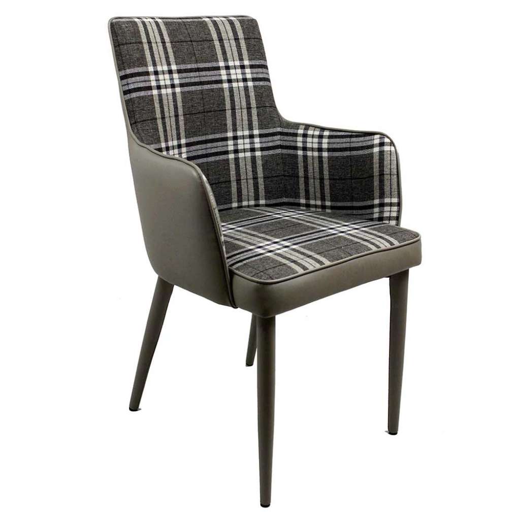 Informationen über Armlehnenstühle in Grau kariert mit Metallgestell Retro Look (2er Set)