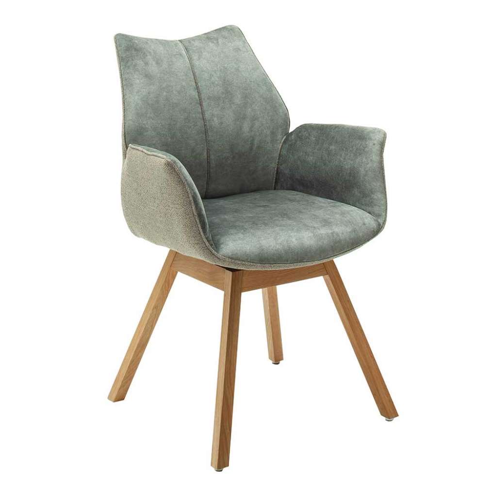 Armlehnenstühle in Graugrün Velours Massivholzgestell (2er Set)