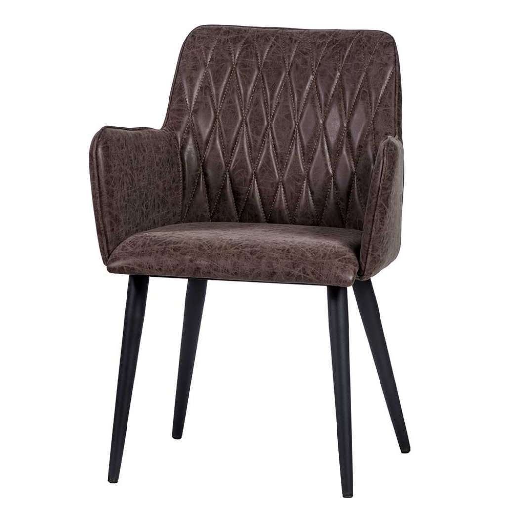 Armlehnstuhl aus Kunstleder und Metall Dunkelbraun und Schwarz - Sessel 58 cm Breit, 82 cm Hoch, 54 cm Tief - Polsterstuhl Esszimmer in Dunkelbraun und Schwarz - Essstuhl im Retrostil - Sitzhöhe (in cm) : 46 - Mit aufwendigen Steppungen - Armlehnstuhl aus Metall und Kunstleder (100% Polyurethan) - Mit Bezugsstoff aus Kunstleder - Mit Armlehnen - Zerlegt, zum leichten Selbstaufbau (Montageanleitung liegt bei)