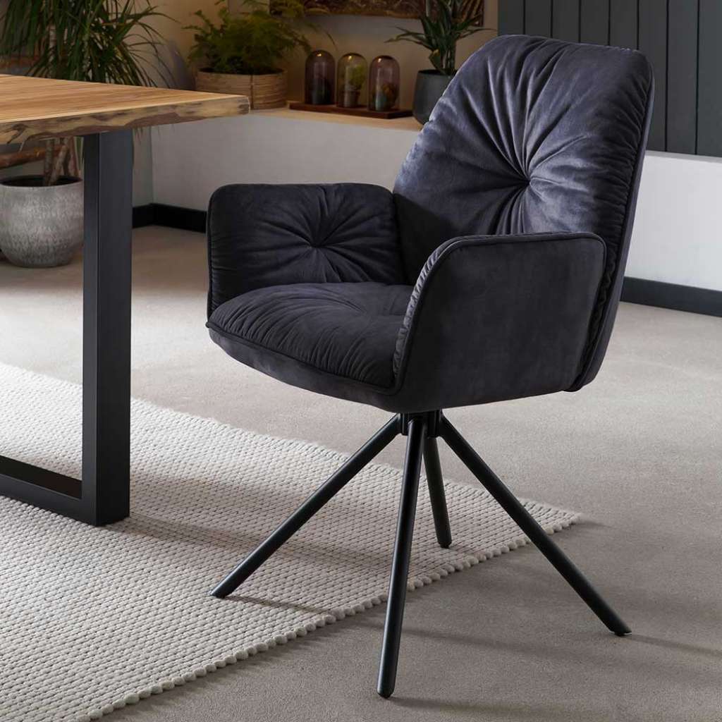 Drehbarer Armlehnstuhl in Schwarz Gestell aus Metall - Esszimmerarmlehnstuhl 61 cm Breit, 90 cm Hoch, 59 cm Tief - Mit verstellbarer Rückenlehne - Sitzhöhe (in cm) : 50 - Sitztiefe (in cm) : 43 - Mit Bezugsstoff aus Samt - Stuhl Esszimmer aus Metall und Samt - Mit aufwendigen Steppungen - Mit Armlehnen - Wohnzimmerstuhl in Schwarz - Esstischstuhl in modernem Design - Zerlegt, zum leichten Selbstaufbau (Montageanleitung liegt bei)Informationen zur Lieferung:Der Versand dieses Artikels erfolgt per DHL Paketdienst (Deutsche Post). Sollten Sie bei der Erstzustellung nicht angetroffen werden, hinterläßt der Zusteller in Ihrem Briefkasten eine Benachrichtigungskarte. Sie können die Ware dann in Ihrer Postfiliale vor Ort abholen. Die Auslieferung erfolgt von Montags bis Samstags. Eine Zustellung an Sonn- und Feiertagen ist nicht möglich.