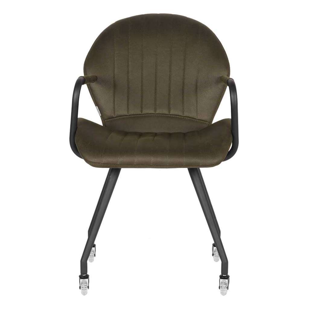 Informationen über Rollbarer Armlehnenstuhl in Olivgrün Microfaser Retrostil