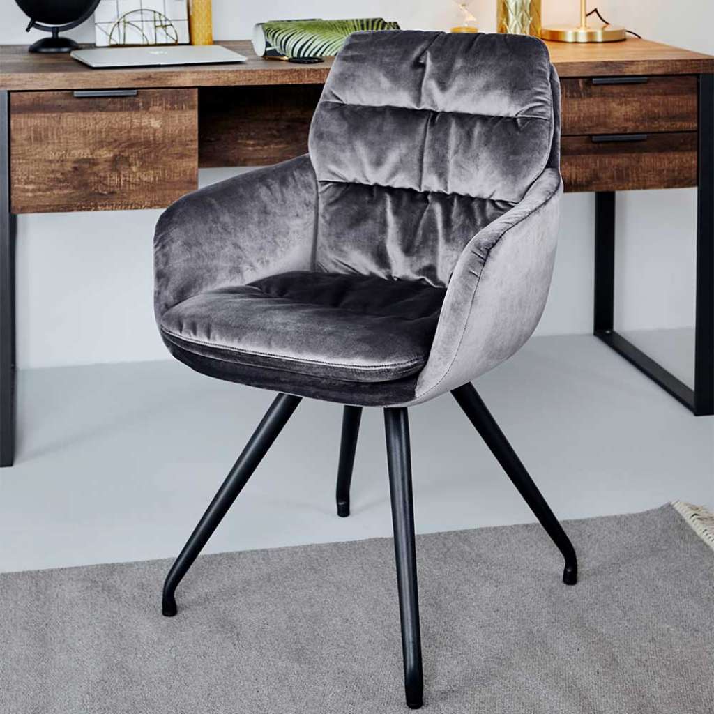 Informationen über Samt Armlehnenstuhl in Grau drehbar