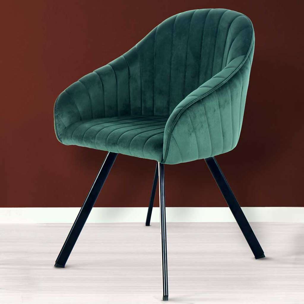 Samt Polsterstühle in Dunkelgrün Armlehnen (2er Set)