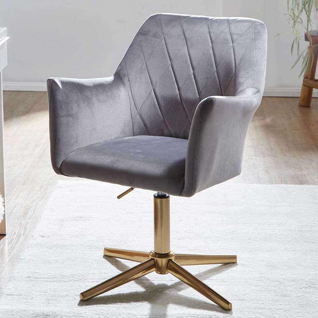 Informationen über Schreibtischdrehstuhl in Grau und Goldfarben Gestell aus Metall