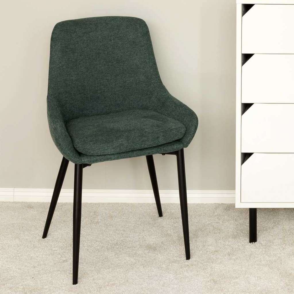 (2er Set) - 2er Set Stühle zerlegt, zum leichten Selbstaufbau (Montageanleitung liegt bei) - Mit gepolsterter Rückenlehne - Essstuhl in modernem Design - Stuhl Küche im 2er Set - Stuhl Esszimmer aus Webstoff und Metall - Mit schalenförmiger Rückenlehne (fließender Übergang von Rücken zu Sitz) - Sitzhöhe (in cm) : 48 - Sitztiefe (in cm) : 44 - Mit Bezugsstoff aus Strukturstoff (raue Oberfläche) - Küchenstuhl in Dunkelgrün und Schwarz - Esszimmerstuhl 53 cm Breit, 85 cm Hoch, 58 cm TiefInformationen zur Lieferung:Der Versand dieses Artikels erfolgt per DHL Paketdienst (Deutsche Post). Sollten Sie bei der Erstzustellung nicht angetroffen werden, hinterläßt der Zusteller in Ihrem Briefkasten eine Benachrichtigungskarte. Sie können die Ware dann in Ihrer Postfiliale vor Ort abholen. Die Auslieferung erfolgt von Montags bis Samstags. Eine Zustellung an Sonn- und Feiertagen ist nicht möglich.