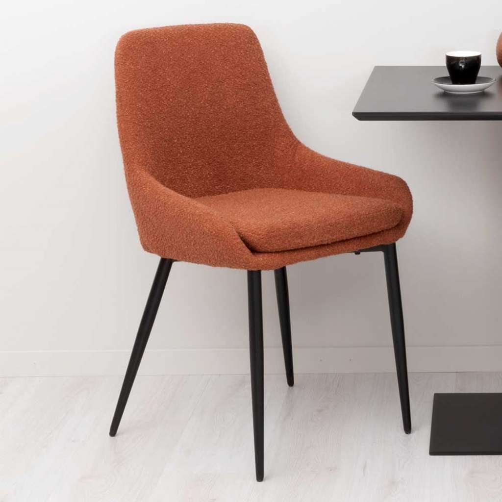 (2er Set) - 2er Set Stühle zerlegt, zum leichten Selbstaufbau (Montageanleitung liegt bei) - Mit gepolsterter Rückenlehne - Essstuhl in modernem Design - Stuhl Küche im 2er Set - Mit schalenförmiger Rückenlehne (fließender Übergang von Rücken zu Sitz) - Sitzhöhe (in cm) : 48 - Sitztiefe (in cm) : 44 - Mit Bezugsstoff aus Bouclé Stoff - Stuhl Esszimmer aus Boucle Stoff und Metall - Kuechenstuhl in Rostfarben und Schwarz - Esszimmerstuhl 53 cm Breit, 85 cm Hoch, 58 cm TiefInformationen zur Lieferung:Der Versand dieses Artikels erfolgt per DHL Paketdienst (Deutsche Post). Sollten Sie bei der Erstzustellung nicht angetroffen werden, hinterläßt der Zusteller in Ihrem Briefkasten eine Benachrichtigungskarte. Sie können die Ware dann in Ihrer Postfiliale vor Ort abholen. Die Auslieferung erfolgt von Montags bis Samstags. Eine Zustellung an Sonn- und Feiertagen ist nicht möglich.