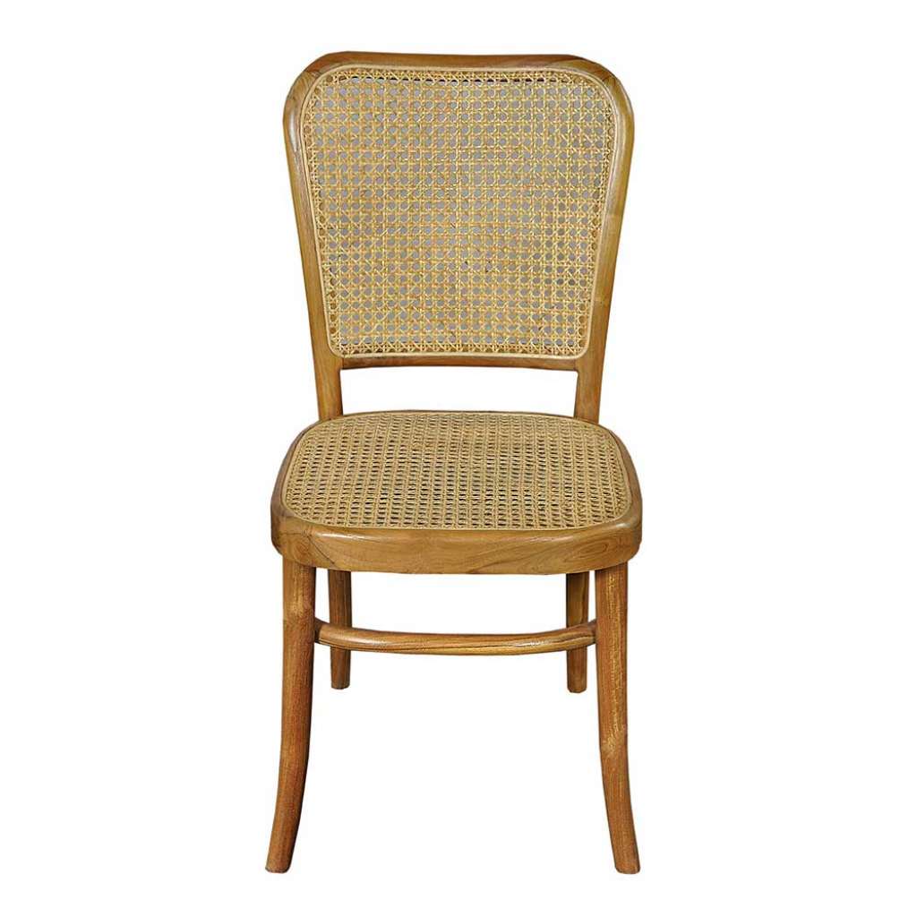 Esstischstuhl aus Teak Massivholz und Rattan Retrostil