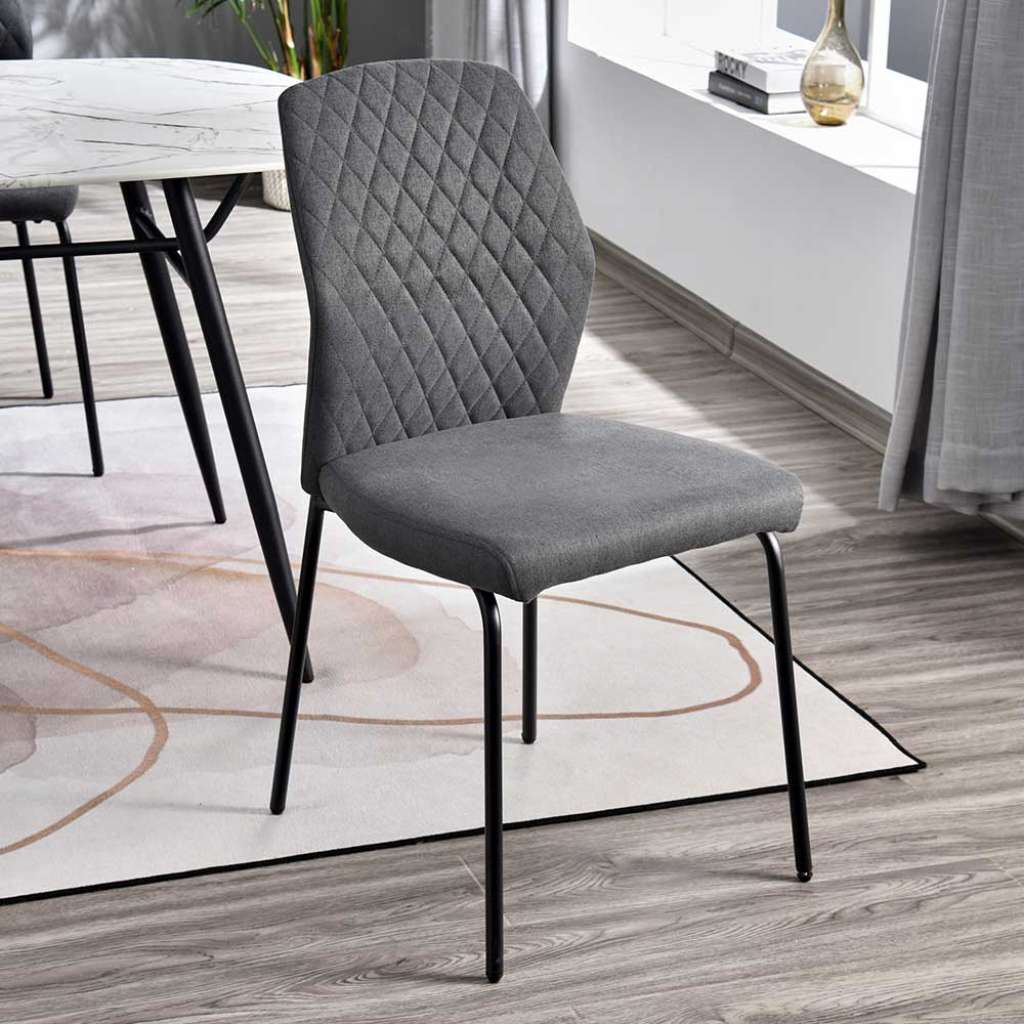 Polsterstühle in Dunkelgrau Webstoff Metallgestell schwarz (4er Set) - Esszimmerstuhl 47 cm Breit, 92 cm Hoch, 56 cm Tief - Sitzhöhe (in cm) : 51 - Küchenstuhl in Dunkelgrau und Schwarz - Sitztiefe (in cm) : 43 - 4 Stühle im 4er Set - Mit Bezugsstoff aus Webstoff - Stuhl Esszimmer aus Webstoff und Metall - Mit aufwendigen Steppungen - Essstuhl in modernem Design - Stuhl für Küche zerlegt, zum leichten Selbstaufbau (Montageanleitung liegt bei)Informationen zur Lieferung:Der Versand dieses Artikels erfolgt per DHL Paketdienst (Deutsche Post). Sollten Sie bei der Erstzustellung nicht angetroffen werden, hinterläßt der Zusteller in Ihrem Briefkasten eine Benachrichtigungskarte. Sie können die Ware dann in Ihrer Postfiliale vor Ort abholen. Die Auslieferung erfolgt von Montags bis Samstags. Eine Zustellung an Sonn- und Feiertagen ist nicht möglich.