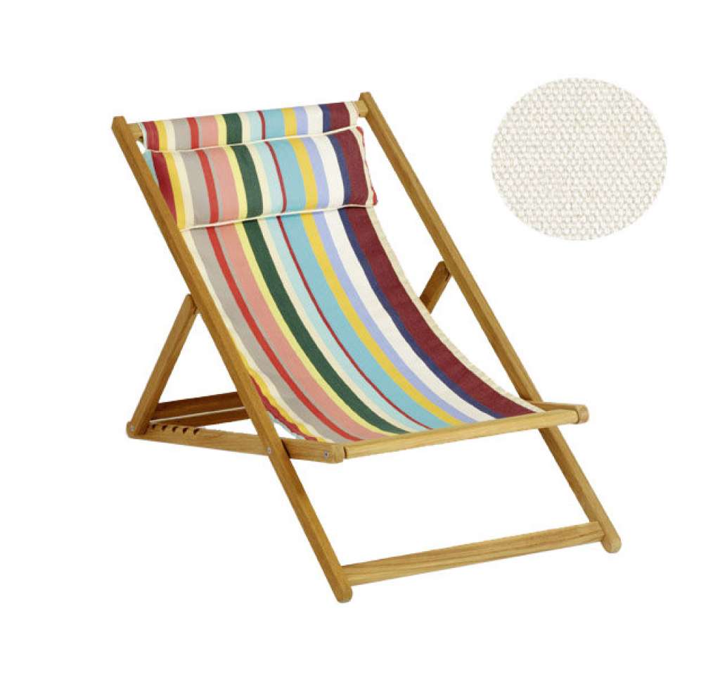 Liegestuhl aus massivem Teak, klappbar, unbehandelt. Bespannung besteht aus 100% Acrylgewebe.Hohe Farb- und Lichtechtheit, strapazierfähig, wetterfest. Wasser- und Schmutzabweisend. Für den Außenbereich geeignet.