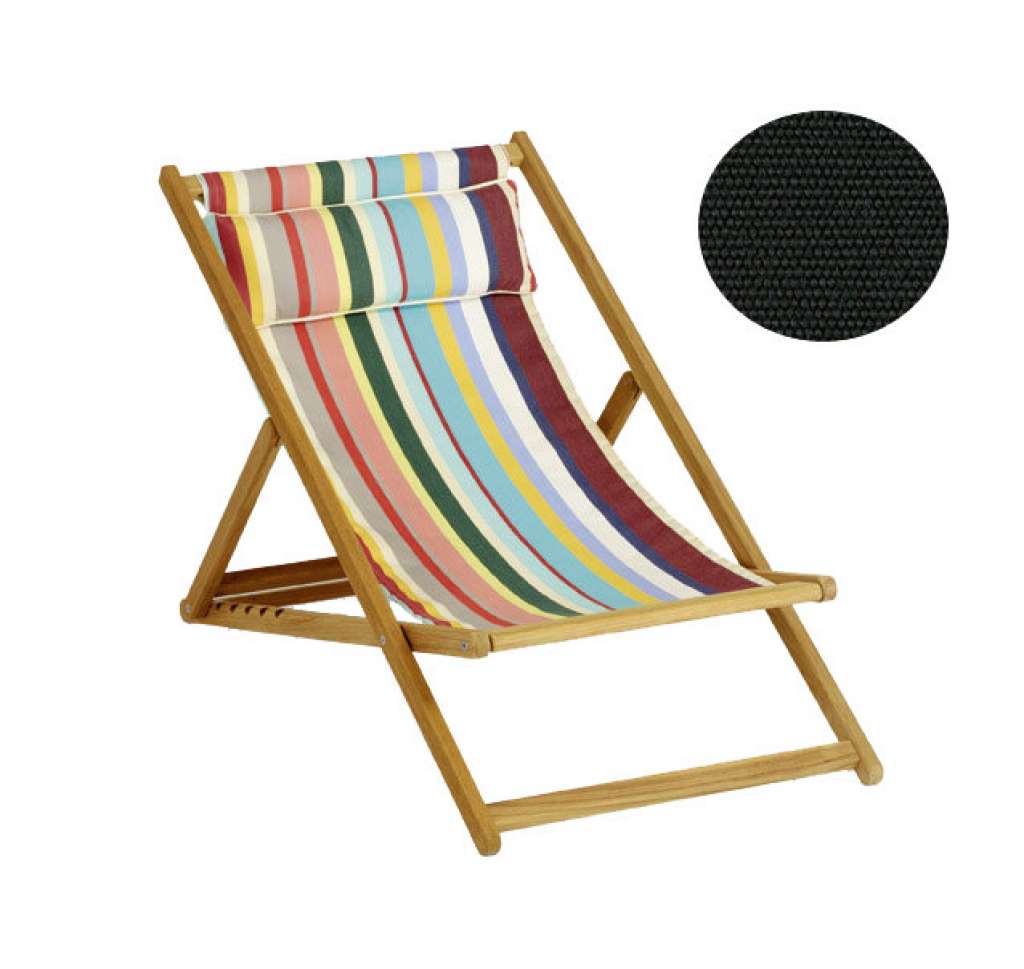 Liegestuhl aus massivem Teak, klappbar, unbehandelt. Bespannung besteht aus 100% Acrylgewebe.Hohe Farb- und Lichtechtheit, strapazierfähig, wetterfest. Wasser- und Schmutzabweisend. Für den Außenbereich geeignet.
