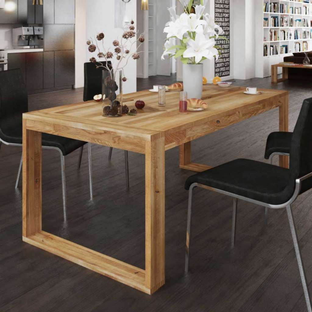 Esszimmertisch aus Wildeiche Massivholz Büegelgestell