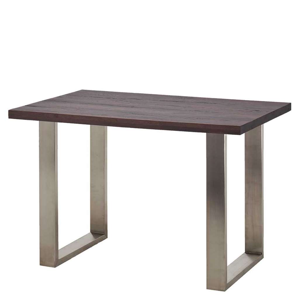 Massivholz Bartisch mit Bügelgestell Edelstahl Eiche verwittert