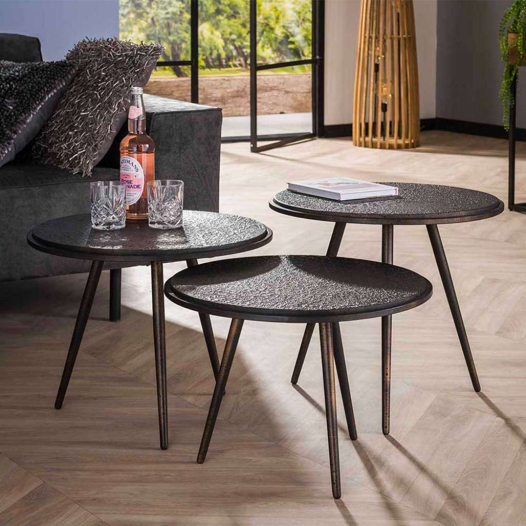 (dreiteilig) - Anstelltisch 54 cm Breit, 48 cm Hoch, 54 cm Tief - Wohnzimmer Tisch in Schwarzgrau - Mit Dreifußgestell - Mit Metall Oberfläche lackiert - Mit runder Tischplatte - Tischgestell im Industry und Loft Stil - Tisch aus Metall - Zerlegt, zum leichten Selbstaufbau (Montageanleitung liegt bei) - DreiteiligInformationen zur Lieferung:Der Versand dieses Artikels erfolgt per DHL Paketdienst (Deutsche Post). Sollten Sie bei der Erstzustellung nicht angetroffen werden, hinterläßt der Zusteller in Ihrem Briefkasten eine Benachrichtigungskarte. Sie können die Ware dann in Ihrer Postfiliale vor Ort abholen. Die Auslieferung erfolgt von Montags bis Samstags. Eine Zustellung an Sonn- und Feiertagen ist nicht möglich.