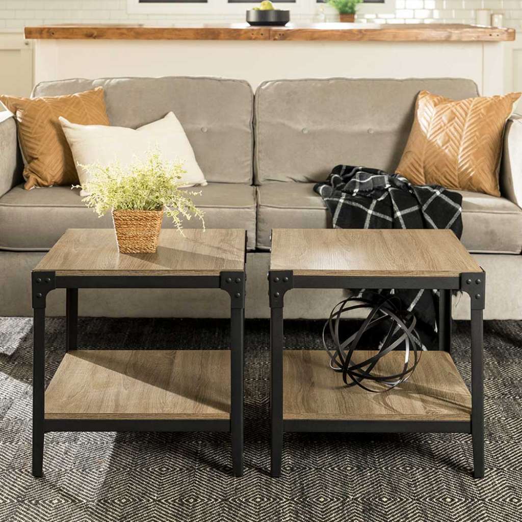 (zweiteilig) - Beistelltisch 51 cm Breit, 48 cm Hoch, 51 cm Tief - Wohnzimmer Tisch in Treibholz Optik und Schwarz - Mit Korpuskanten mit Metall Umrandung - Foliert - Mit quadratischer Tischplatte - Mit einer zusätzlichen Ablagefläche unterhalb der Tischplatte - Dreisatztisch im Industry und Loft Stil - Tisch aus Metall und MDF - Mit Vierfußgestell - Zerlegt, zum leichten Selbstaufbau (Montageanleitung liegt bei) - ZweiteiligInformationen zur Lieferung:Der Versand dieses Artikels erfolgt per DHL Paketdienst (Deutsche Post). Sollten Sie bei der Erstzustellung nicht angetroffen werden, hinterläßt der Zusteller in Ihrem Briefkasten eine Benachrichtigungskarte. Sie können die Ware dann in Ihrer Postfiliale vor Ort abholen. Die Auslieferung erfolgt von Montags bis Samstags. Eine Zustellung an Sonn- und Feiertagen ist nicht möglich.