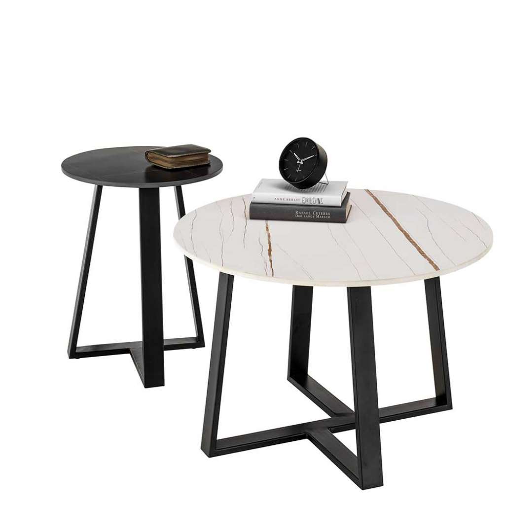 (zweiteilig) - Couch-tisch 70 cm Breit, 45 cm Hoch, 70 cm Tief - Mit Keramik Oberfläche - Wohnzimmertisch aus Keramik aus Metall - Zweisatztisch mit runder Tischplatte - Anstelltisch in Schwarz und Weiß - Mit Bügelgestell - Sofa Tisch in modernem Design - Zerlegt, zum leichten Selbstaufbau (Montageanleitung liegt bei) - ZweiteiligInformationen zur Lieferung:Der Versand dieses Artikels erfolgt per DHL-Superservice. Dieses beinhaltet folgenden Service für Sie:Terminvereinbarung: Sie werden frühzeitig (ein paar Tage im Voraus) durch die ausliefernde Spedition kontaktiert und Ihnen der Auslieferzeitpunkt mitgeteilt. Die Kontaktaufnahme erfolgt per Telefon. Bei telefonischer Nichterreichbarkeit werden Sie per Postkarte über das Auslieferdatum informiert.Lieferung Frei Verwendungsstelle: Der Transport erfolgt an Ort und Stelle. Sie bestimmen, wohin Sie die Ware getragen haben möchten. Ob Dachgeschoss, Erdgeschoss, Schlaf- oder Wohnzimmer - die Ware wird an den von Ihnen gewünschten Ort vertragen.Zwei Speditionsfahrer vertragen die Ware: keine Mithilfe beim Entladen und Vertragen der Ware nötig. Die Speditionsfahrer sind auf den Möbeltransport spezialisiert und entsprechend geschult, somit sind Transportreklamationen nahezu ausgeschlossen.Die Auslieferung erfolgt von Montags bis Freitags. Eine Zustellung an Sonn- und Feiertagen ist nicht möglich.Alle aufgeführten Serviceleistungen sind im Artikelpreis enthalten. Es fallen keine weiteren Kosten für Sie an. Bei Insellieferungen kann nur ein reiner Abgabeservice angeboten werden - das Vertragen der Ware + Verpackungsentsorgung entfällt hierbei.