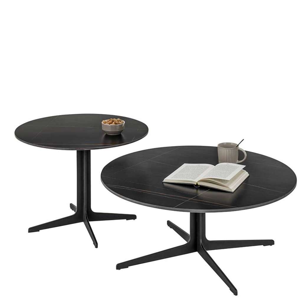 (zweiteilig) - Designercouchtisch 80 cm Breit, 35 cm Hoch, 80 cm Tief - Mit Sterngestell - Mit Keramik Oberfläche - Tisch für Wohnzimmer aus Keramik aus Metall - Sofa Tisch im Retrostil - Dreisatztisch mit runder Tischplatte - Beistelltisch in Schwarz - Zerlegt, zum leichten Selbstaufbau (Montageanleitung liegt bei) - ZweiteiligInformationen zur Lieferung:Der Versand dieses Artikels erfolgt per DHL-Superservice. Dieses beinhaltet folgenden Service für Sie:Terminvereinbarung: Sie werden frühzeitig (ein paar Tage im Voraus) durch die ausliefernde Spedition kontaktiert und Ihnen der Auslieferzeitpunkt mitgeteilt. Die Kontaktaufnahme erfolgt per Telefon. Bei telefonischer Nichterreichbarkeit werden Sie per Postkarte über das Auslieferdatum informiert.Lieferung Frei Verwendungsstelle: Der Transport erfolgt an Ort und Stelle. Sie bestimmen, wohin Sie die Ware getragen haben möchten. Ob Dachgeschoss, Erdgeschoss, Schlaf- oder Wohnzimmer - die Ware wird an den von Ihnen gewünschten Ort vertragen.Zwei Speditionsfahrer vertragen die Ware: keine Mithilfe beim Entladen und Vertragen der Ware nötig. Die Speditionsfahrer sind auf den Möbeltransport spezialisiert und entsprechend geschult, somit sind Transportreklamationen nahezu ausgeschlossen.Die Auslieferung erfolgt von Montags bis Freitags. Eine Zustellung an Sonn- und Feiertagen ist nicht möglich.Alle aufgeführten Serviceleistungen sind im Artikelpreis enthalten. Es fallen keine weiteren Kosten für Sie an. Bei Insellieferungen kann nur ein reiner Abgabeservice angeboten werden - das Vertragen der Ware + Verpackungsentsorgung entfällt hierbei.