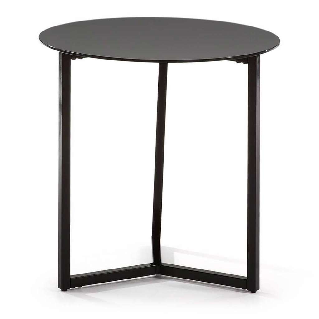 Informationen über Beistelltisch schwarz mit Glasplatte Bügelgestell