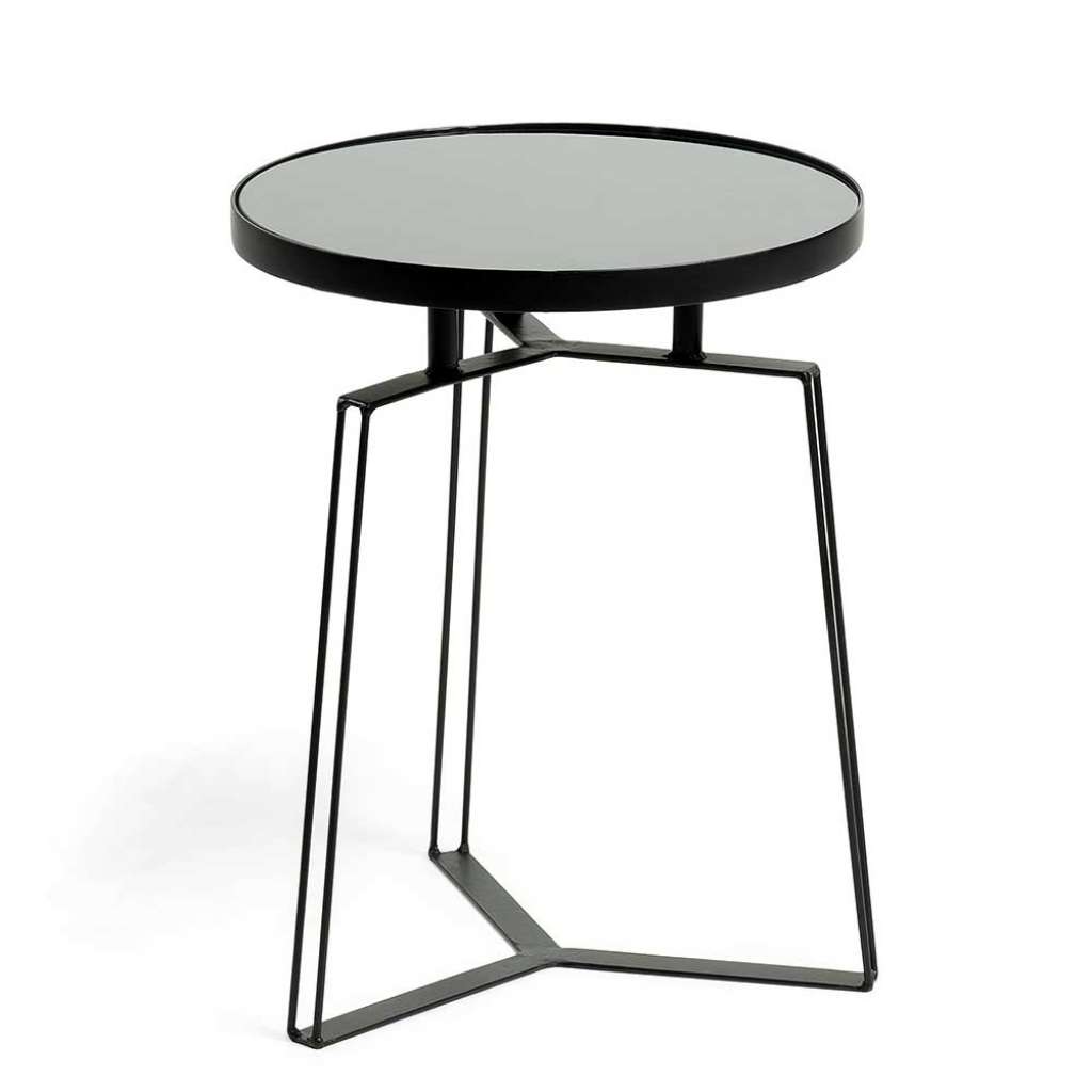 Informationen über Beistelltisch schwarz mit Glasplatte Metall Bügelgestell