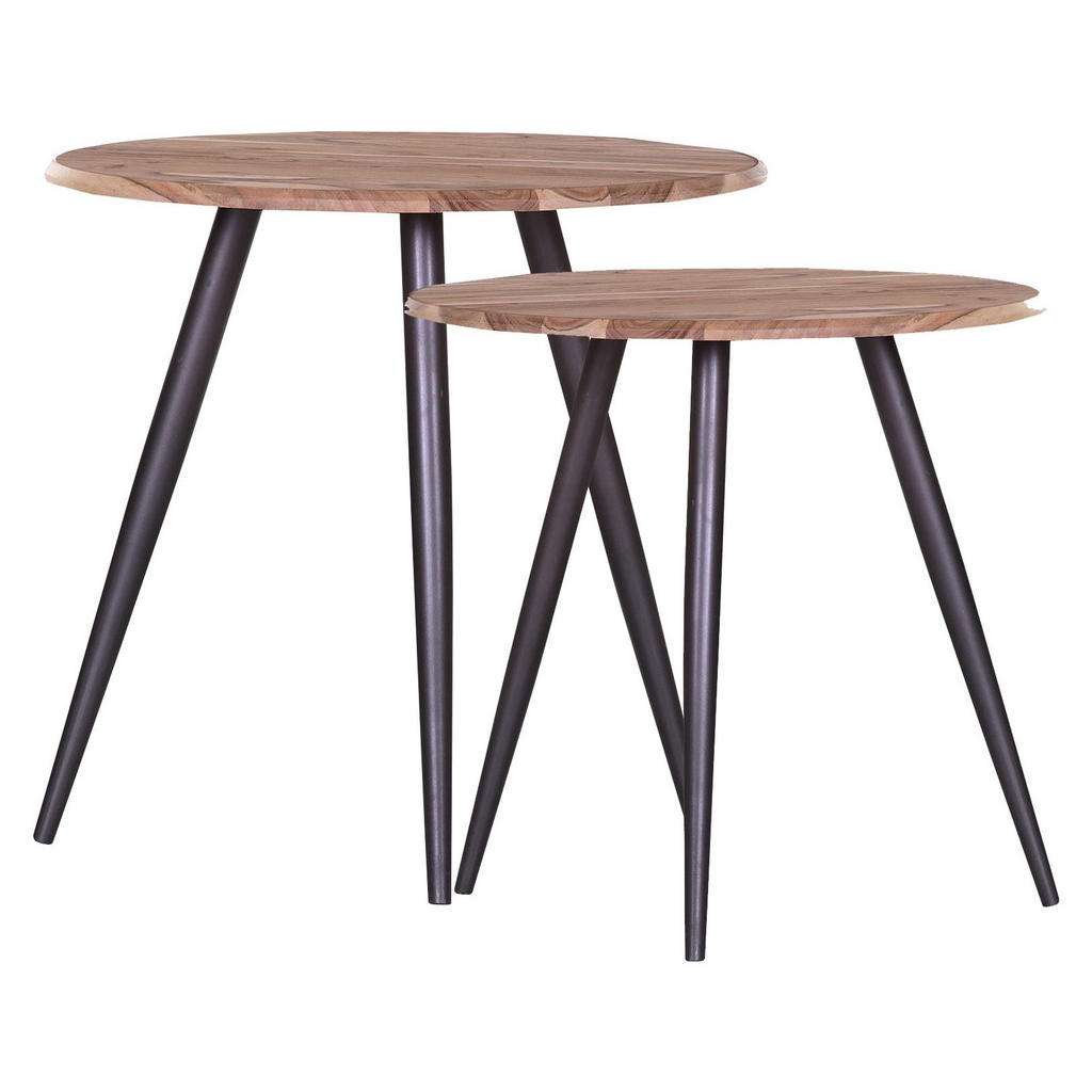 Carryhome BEISTELLTISCHSET Akazie massiv rund Schwarz, Braun