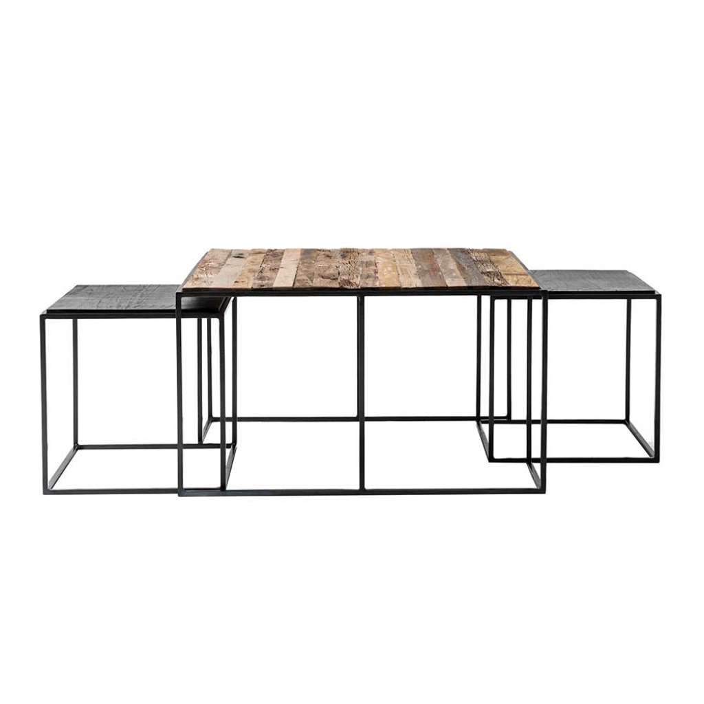 Couchtisch Set aus Recyclingholz und Eisen Loft Design (3-teilig)