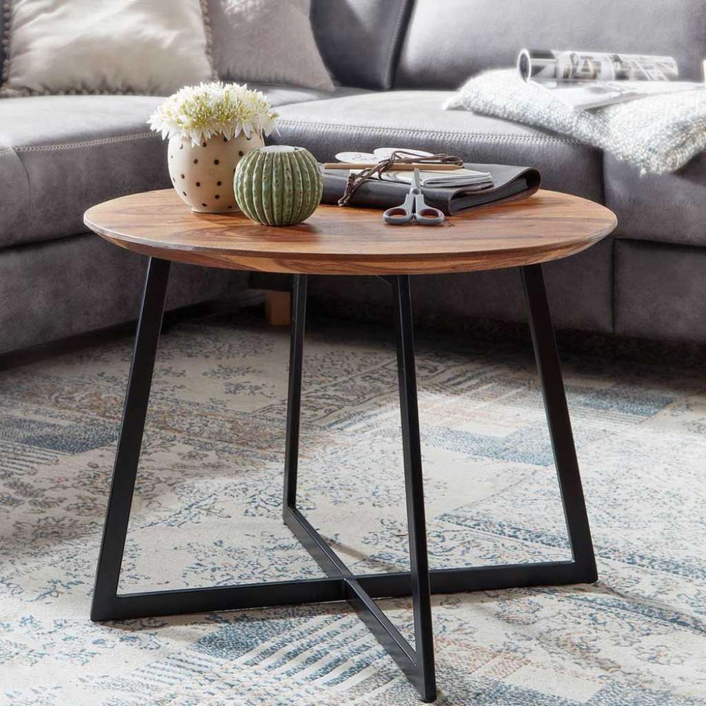 Retro Couchtisch aus Sheesham Massivholz mit Schweizer Kante 60 cm Durchmesser