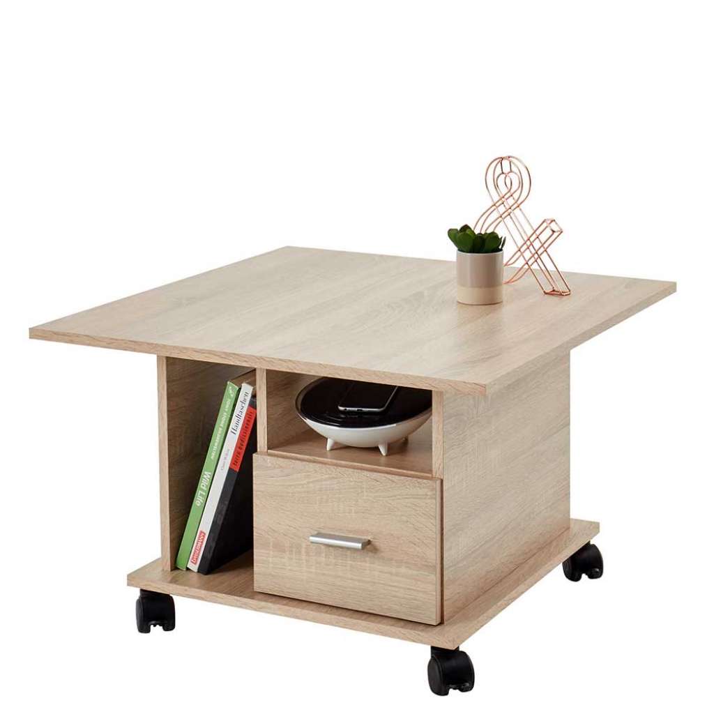 Rollbarer Wohnzimmer Tisch in Sonoma-Eiche einer Schublade