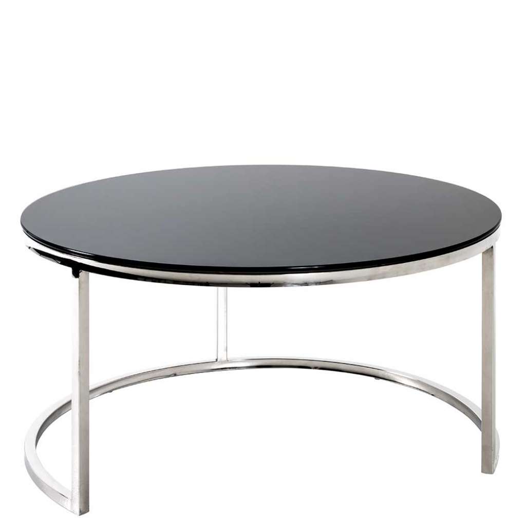 Informationen über Runder Couchtisch mit Schwarzglasplatte C-Fußgestell aus Edelstahl