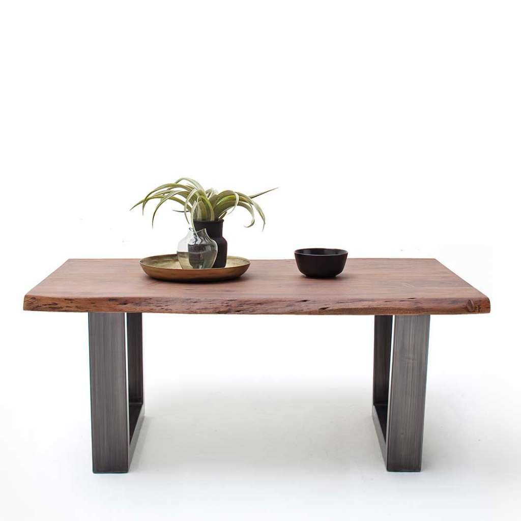 Rustikaler Couchtisch in Walnussfarben Anthrazit Vintage - Designercouchtisch 45 cm Hoch - Beistelltisch Sofa in Walnussfarben und Anthrazit - Mit natürlicher Baumkante - Holztisch massiv aus Akazie Massivholz und Metall - Sofa Tisch im Industry und Loft Stil - Mit Massivholz Oberfläche lackiert - Mit Bügelgestell - Zerlegt, zum leichten Selbstaufbau (Montageanleitung liegt bei)Varianten - 001: Breite: 75 / Tiefe: 75 / mit quadratischer Tischplatte - 002: Breite: 110 / Tiefe: 70 / mit rechteckiger TischplatteInformationen zur Lieferung:Der Versand dieses Artikels erfolgt per DHL Paketdienst (Deutsche Post). Sollten Sie bei der Erstzustellung nicht angetroffen werden, hinterläßt der Zusteller in Ihrem Briefkasten eine Benachrichtigungskarte. Sie können die Ware dann in Ihrer Postfiliale vor Ort abholen. Die Auslieferung erfolgt von Montags bis Samstags. Eine Zustellung an Sonn- und Feiertagen ist nicht möglich.