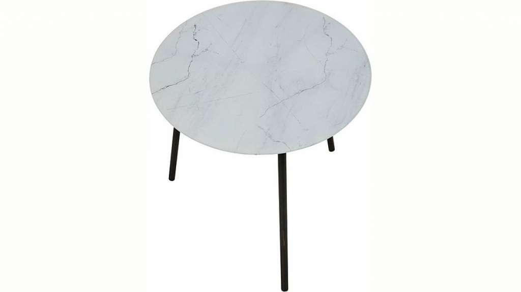 Schlicht und doch präsent. Beistellttisch mit Metallbeinen und einer pflegeleichten Glasplatte in Marmor-Optik. Nur für Indoor-Einsatz geeignet. Maße: ca. L50 x B50 x H50 cm. Gewicht: ca. 2,5 kg. Material: Metall, Hartglas.