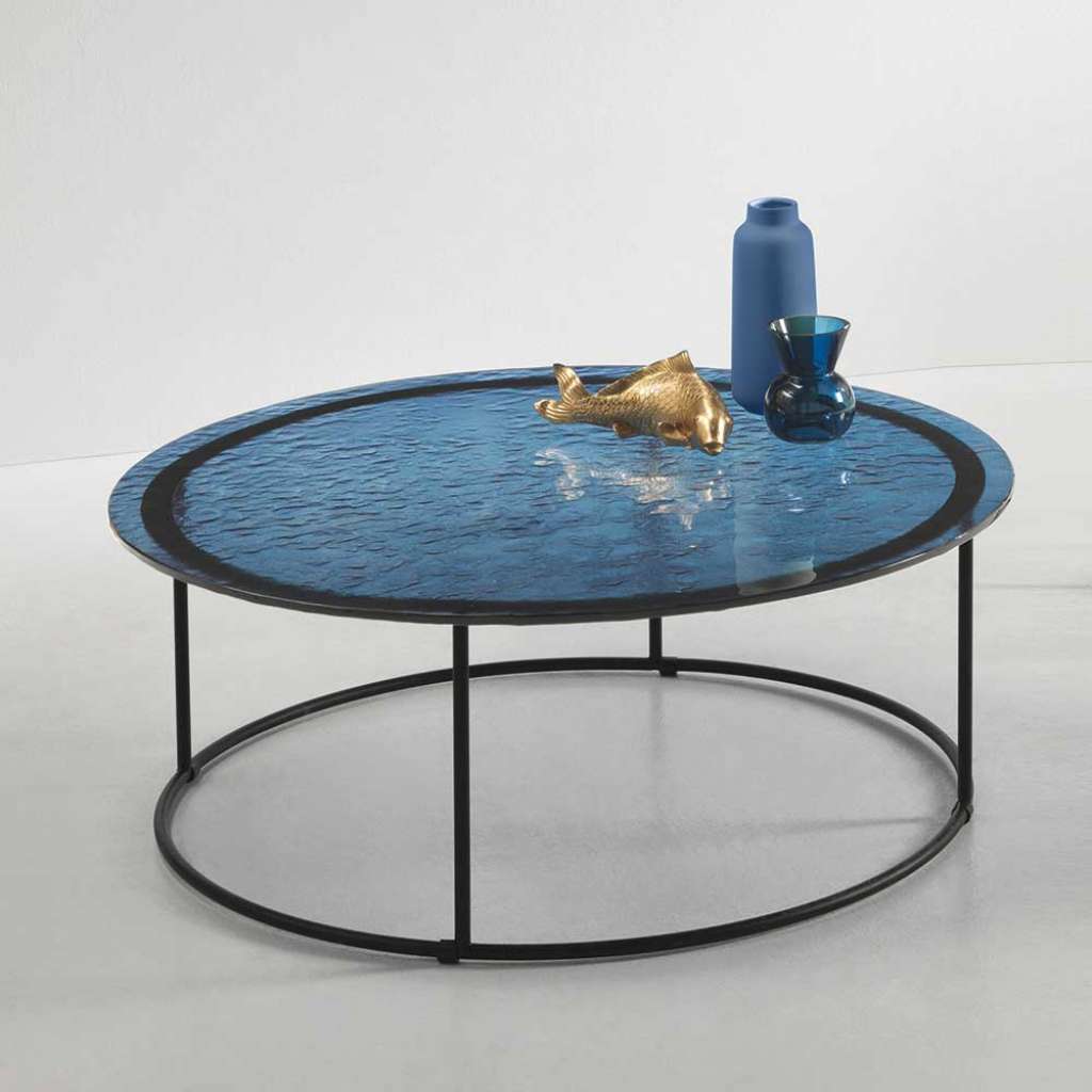 Informationen über Strukturglas Couchtisch in Blau und Schwarz Ringgestell