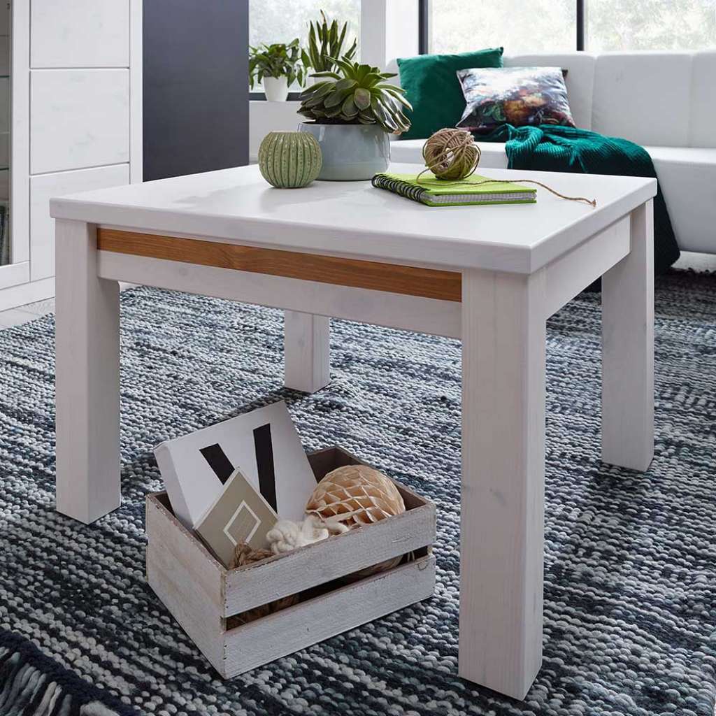 Wohnzimmertisch in Weiß und Eichefarben Kiefer Massivholz