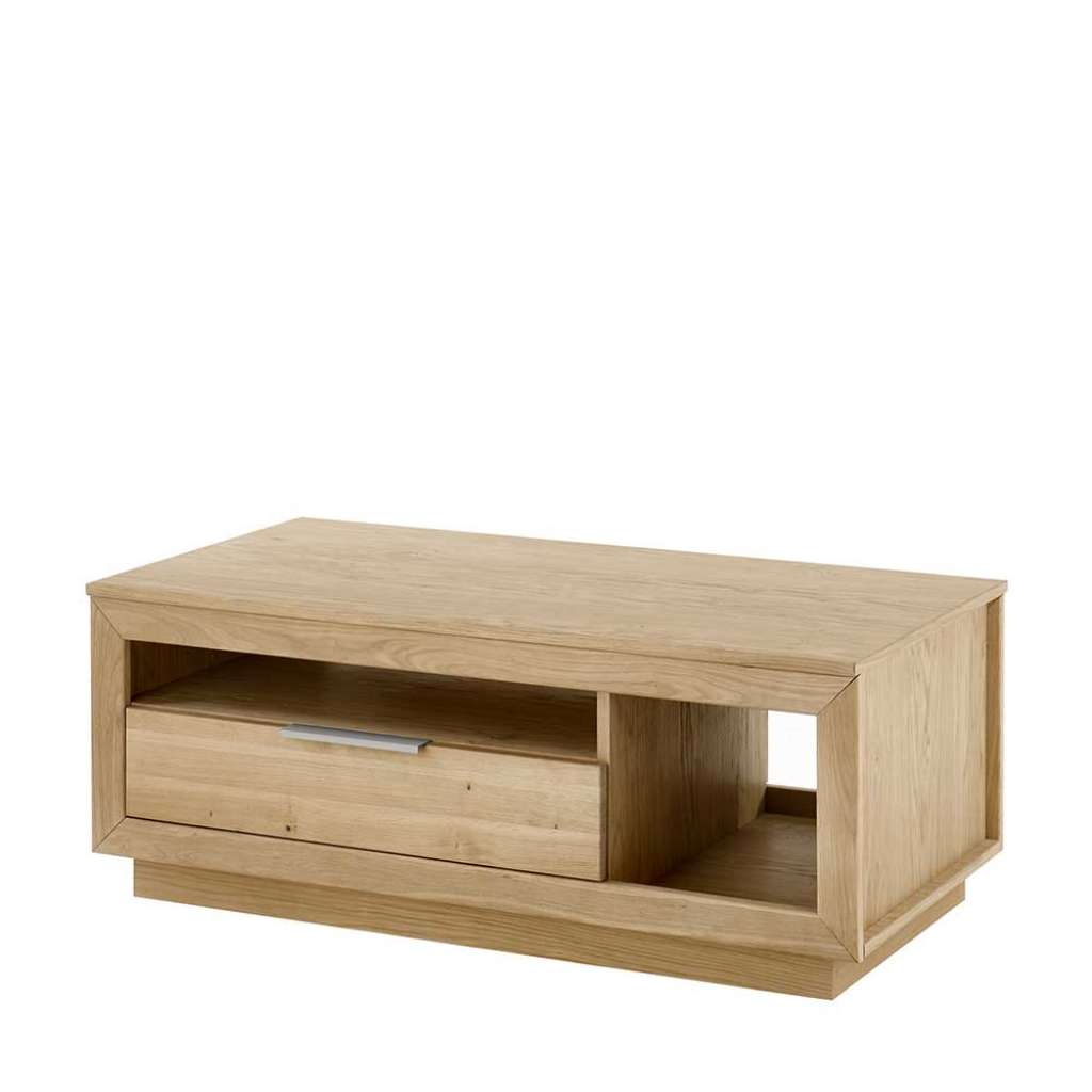 Couchtisch aus Wildeiche teilmassiv Eiche Bianco geölt - Couchtisch 110 cm Breit, 45 cm Hoch, 65 cm Tief - Furniert und geölt - Mit einer Schublade mit Soft Close und auf Metallauszug - Auf Sockelgestell - Wohnzimmer Tisch in Wildeichefarben und Eiche Bianco - Mit zwei zusätzlichen Ablageflächen unterhalb der Tischplatte - Sofatisch aus Spanplatte und Wildeiche Massivholz - Fertig montierte Anlieferung (eventuell müssen noch Kleinteile angebracht werden) - Tischgestell in modernem Design - Mit rechteckiger Tischplatte - Mit MetallgriffenInformationen zur Lieferung:Der Versand dieses Artikels erfolgt per DHL-Superservice. Dieses beinhaltet folgenden Service für Sie:Terminvereinbarung: Sie werden frühzeitig (ein paar Tage im Voraus) durch die ausliefernde Spedition kontaktiert und Ihnen der Auslieferzeitpunkt mitgeteilt. Die Kontaktaufnahme erfolgt per Telefon. Bei telefonischer Nichterreichbarkeit werden Sie per Postkarte über das Auslieferdatum informiert.Lieferung Frei Verwendungsstelle: Der Transport erfolgt an Ort und Stelle. Sie bestimmen, wohin Sie die Ware getragen haben möchten. Ob Dachgeschoss, Erdgeschoss, Schlaf- oder Wohnzimmer - die Ware wird an den von Ihnen gewünschten Ort vertragen.Zwei Speditionsfahrer vertragen die Ware: keine Mithilfe beim Entladen und Vertragen der Ware nötig. Die Speditionsfahrer sind auf den Möbeltransport spezialisiert und entsprechend geschult, somit sind Transportreklamationen nahezu ausgeschlossen.Die Auslieferung erfolgt von Montags bis Freitags. Eine Zustellung an Sonn- und Feiertagen ist nicht möglich.Alle aufgeführten Serviceleistungen sind im Artikelpreis enthalten. Es fallen keine weiteren Kosten für Sie an. Bei Insellieferungen kann nur ein reiner Abgabeservice angeboten werden - das Vertragen der Ware + Verpackungsentsorgung entfällt hierbei.